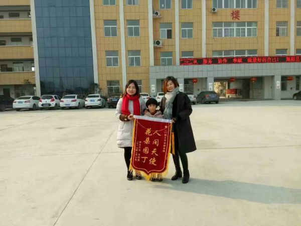 冬天的早晨,寒风阵阵。舞阳育才学校小学部校长室内却春意盎然,一年级学生宋栩爽的家长心怀感激地将印有“人间天使,花朵园丁”的锦旗送到了学校。