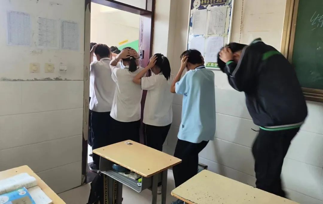 警报声再次响起,各班学生在老师指挥下,按要求保护自己的头部,迅速有序地分别从安全通道紧急疏散到安全、空旷的广场。各岗位负责老师认真履行相应职责,在教室、楼道、楼梯口,引导学生有序撤离,真正做到以学生生命安全为重。