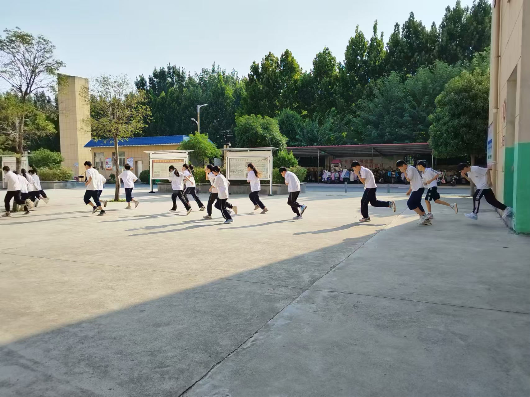 当火灾警报声在校园中骤然响起,全体师生立即进入紧急状态。老师们迅速到达指定岗位,引导同学们捂住口鼻,弯腰低身,沿着预定的疏散路线快速、有序地撤离。