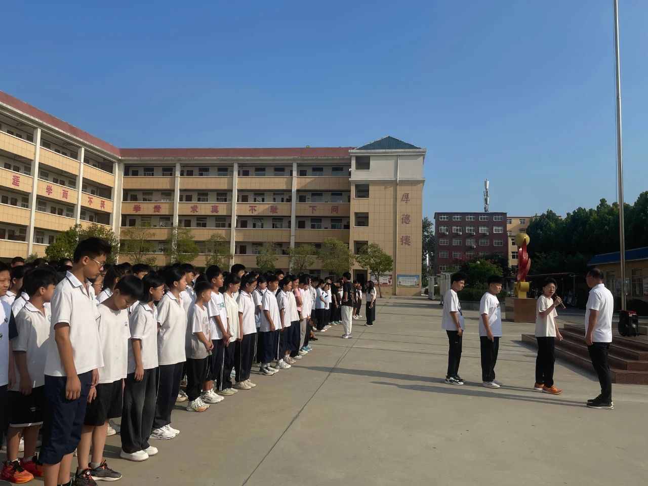 疏散到了指定地点后,各班班长向梁主任汇报各班人数,梁主任对此次防震减灾消防演练活动进行了总结点评。他强调,安全教育是学校工作的重中之重,每位师生都应时刻保持警惕,将安全意识内化于心,外化于行,并呼吁大家继续加强防灾减灾知识的学习,不断提升自我保护能力,共同守护校园安全。