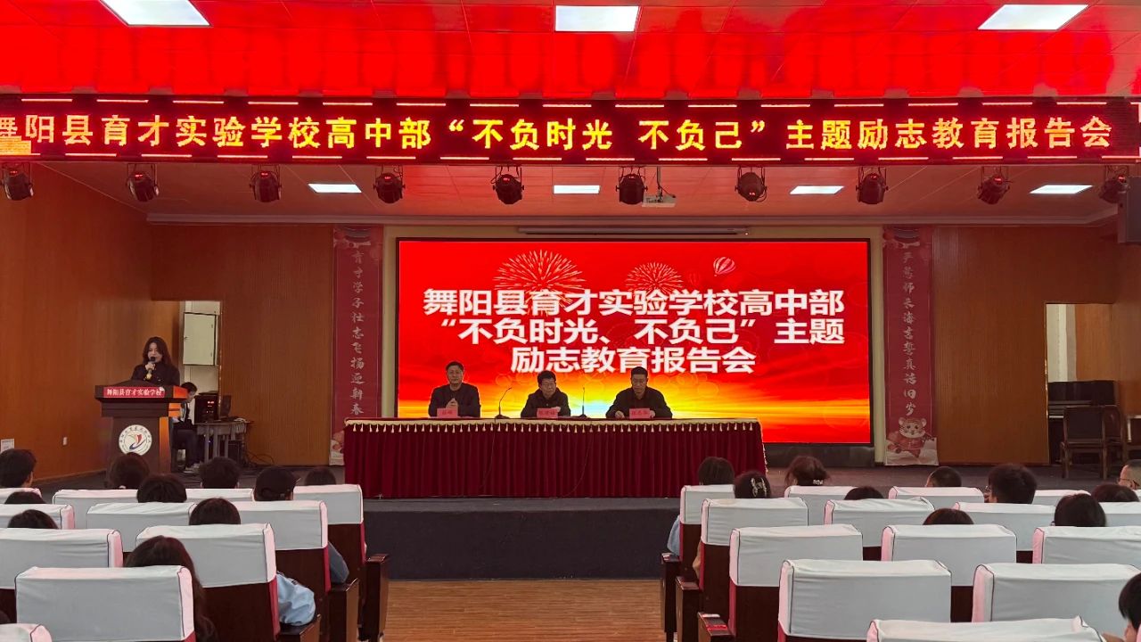 为进一步挖掘同学们的潜能,鼓舞同学们奋力拼搏的斗志,点燃同学们学习的热情,舞阳县育才实验学校高中部于2025年3月1日在报告厅举行以“不负青春,不负己”为主题的励志教育报告会,激发育才学子的拼搏精神。