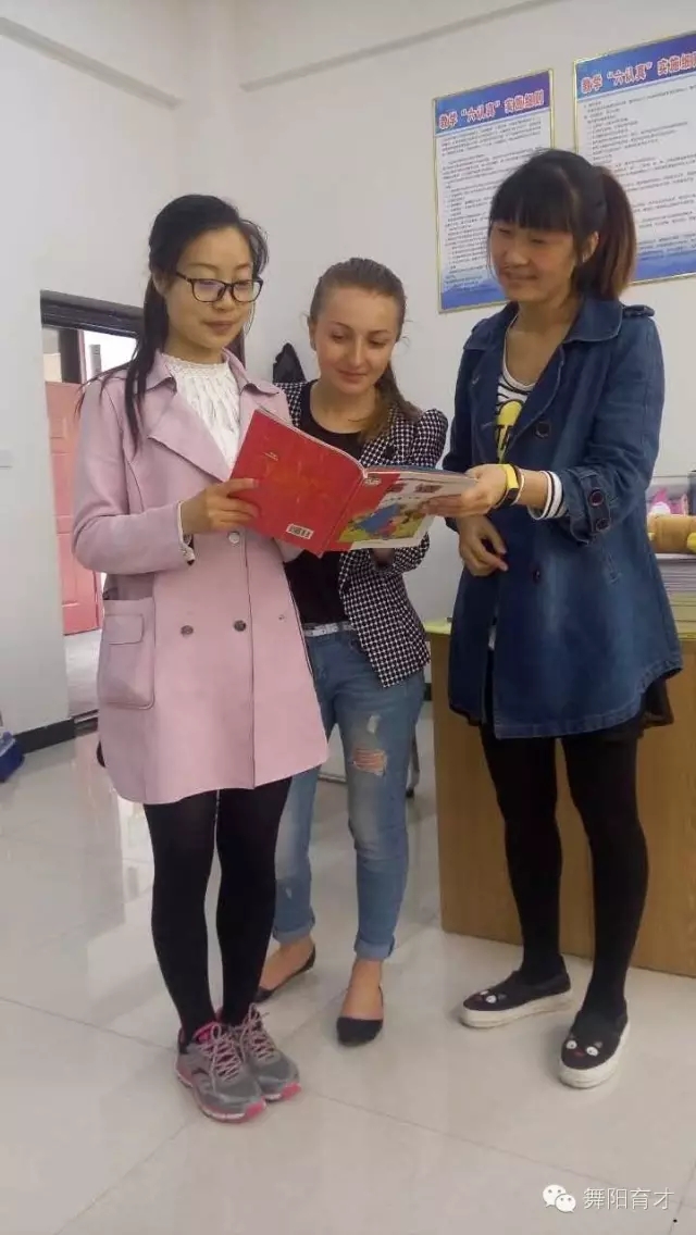 Mria在办公室和老师们一起教研。外籍老师练习了中文,我校老师练习了英语口语。